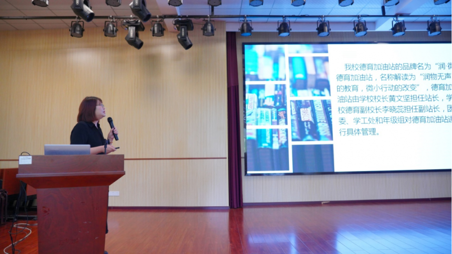 教务处主任王慧峰做了课堂教学和高考备考经验分享,深入浅出了阐明了我校在高考备考过程中探索出的丰厚经验。学工处主任方玲丽介绍了我校润微德育加油站建设的探索实践,学校德育工作狠抓安全教育同时又重视传统文化的浸润,打造了各具特色的文化活动。我校优秀班主任代表郭婕老师则展示了自己班级管理的智慧。