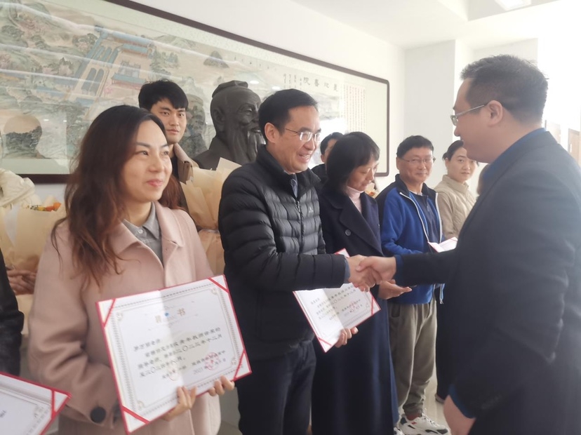 邹靖书记、黄文坚校长、龚韦韦副校长为师傅们颁发聘书。一纸聘书,一份承诺;一份责任,一份期待。它凝“新”而聚力,任重而道远。