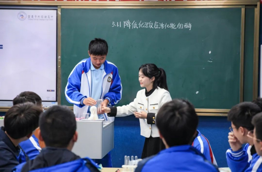 本次第六届协作体“同课异构”生物组教学比赛在长江中学进行,非常感谢学校给我此次有机会参加,也很荣幸与生物学科的各位优秀教师们交流学习。本次比赛教学内容是必修一《分子与细胞》第五章第一节《降低化学反应活化能的酶》的第一课时,在教学设计上,我以直观、吸引眼球的“大象牙膏实验”进行课堂导入,通过引导学生观察现象→提出问题→作出假设→设计实验→实验验证→得出实验结论,通过学生实操探究过氧化氢在不同条件下的分解实验为例来探究酶的作用,通过无机催化剂与酶催化作用的比较,掌握控制变量等科学方法,突出酶的催化作用,加深对于细胞代谢概念的理解。其次通过生动有趣的箱子模型演示展现了不同条件反应加快的本质,突破对酶的作用机理——酶的作用是显著降低化学反应的活化能这一抽象概念的学习难点。而在研究酶的本质这部分内容时,直接让学生利用了书上的资料阅读,通过回归课本的方式,发现科学史让学生明确了酶的本质,提高了学生的自主学习能力。本堂课学生积极主动参与教学活动,活跃了课堂氛围,实现了让学生成为课堂的主体的目标。我深知在本次比赛取得高一组第一名的成绩,离不开学校和生物教研组对我的大力支持,给予机会让我作为新人出去提升。在磨课期间,生物组的各位前辈给予我了非常多的宝贵意见,帮助我不断改进、优化教学设计,受益匪浅,最终让我本次比赛的课堂中展现好的风采。作为青年教师的我,深感外高后备力量强大,让我有机会在短时间内适应高中教学,提升自己的教学能力。在今后的工作中,我也会不断地学习,讲好每一堂课,做一个合格且更加优秀的生物教师。