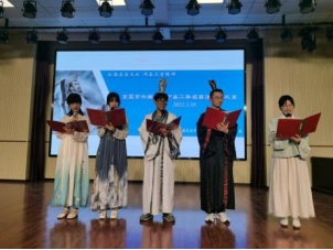 英语学科在教研组长刘振亮老师的带领下,一方面抓好常规,协力同行。通过观课、评课、议课,一人上课,团队听课等手段,帮助老师们在借鉴中改进教学方式,在开拓中内化他人经验;另一方面,英语教研组积极组织学生开展各类英语活动赛,通过丰富多彩的课内外活动实现多维育人。此外,近几年一场场精彩的舞台剧、课本剧、传统故事在外高大舞台上演。很多剧本都是同学们自创自导,老师们积极参与指导和修改。如根据《简爱》创作的《结婚仪式被中断》The marriage is stopped,《公主的选择》The princess’s selection,《孟母三迁》Three moves by Mencius’s mother等作品都给师生们留下深刻印象。除了上述活动,我校近年来不同年级多次举办英语主题演讲比赛,如“外文书籍推介会”,“分享红色经典”“弘扬屈原文化,传承求索精神”,“我理解的英语文化”等英语演讲比赛等。