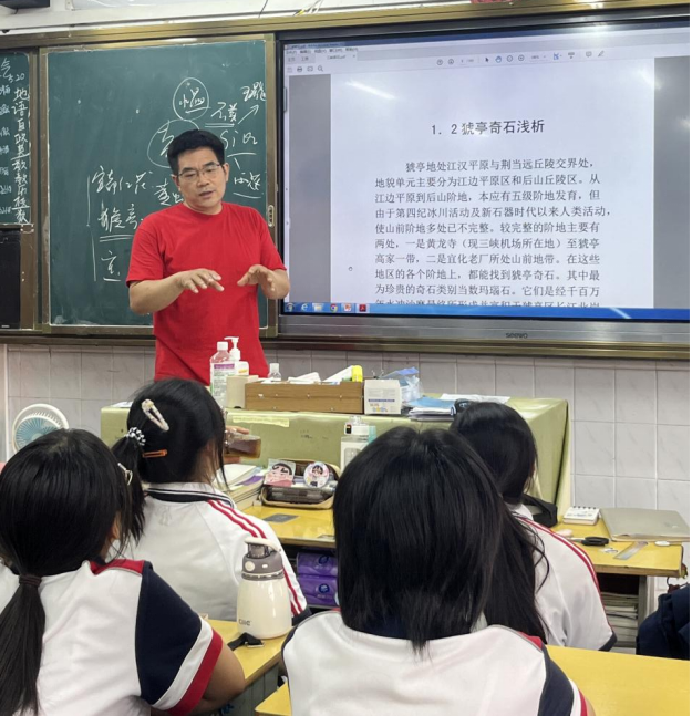 地理老师李红诚结合乡土地理特点给学生上生动的活动课。他向同学们介绍了三峡玛瑙的收集与品鉴、宜昌奇石的由来与品鉴、猇亭奇石资源。这门课不仅增进学生的地理学习和实地考察的兴趣,提高其奇石收集、审美和品鉴的能力,更是教会学生趣品各种中华传统宝玉石和奇石。