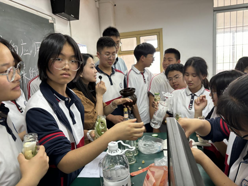 传统发酵技术作为一种悠久的食品加工方法,承载着人类智慧的结晶。生物老师高胜涛和谭宇通过实验操作让同学们了解和掌握传统发酵技术的基本原理、操作方法及其在食品制作中的应用。这不仅有助于培养学生的实践能力和创新思维,也提升了同学们对传统文化的认识和尊重。