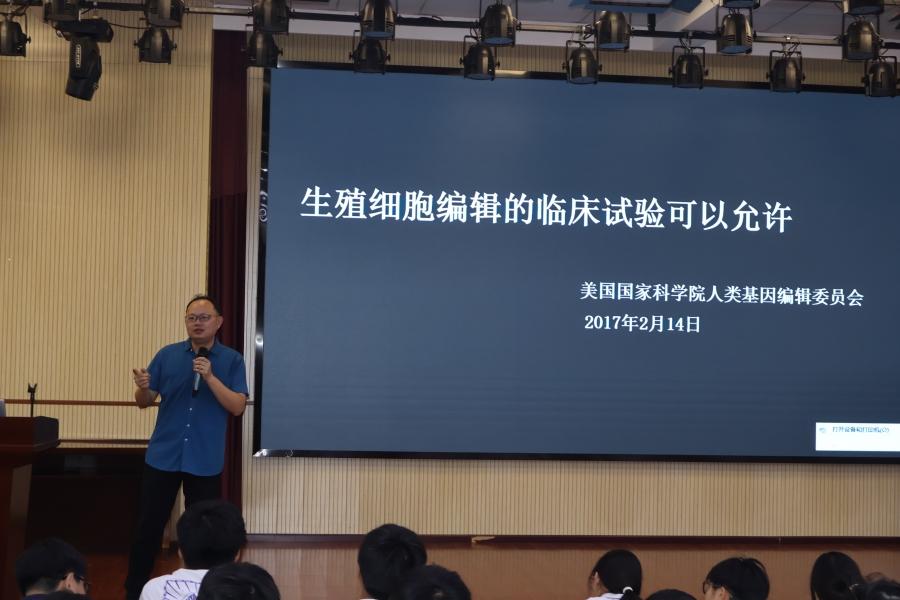 范雄伟教授向同学们做《煮酒论刀- 畅谈基因编辑的神器时代》的科学讲座。他围绕CRISPR-CAS9基因编辑神器的前世今生展开讲座,向同学们介绍基因编辑技术的突破是如何让人类从生物遗传信息的 “读取”阶段进入到基因组的“改写” 阶段,同时也让“全新设计”基因组按照人类意愿合成生物成为现实,彻底从方法论的底层,改变人解决问题的思路,成为生物学的“断代工程”,给整个生命科学领域带来无限的遐想与可能的。