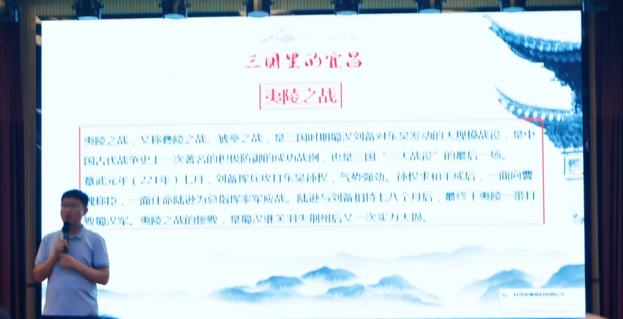 紧接着,李征宇教授以历史著名典故“刘备借荆州”为切入点,向同学们讲述荆州和宜昌作为入蜀的门户,兵家必争之地,在三国时期扮演重要的角色以及三国后期在此发生的猇亭之战是如何改变三国鼎立的局面。他以深厚的文学造诣和独到的见解为同学们带来一场精彩的学述盛宴。