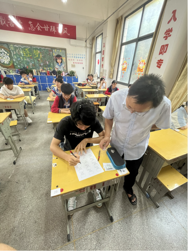 此外,学校特别关注学生的心理辅导和减压工作。专门安排了专业的心理老师在现场为考生提供心理疏导和减压服务,帮助他们缓解紧张情绪,保持良好的心态。学校领导们在考试期间多次巡考,为本次考试圆满进行保驾护航。