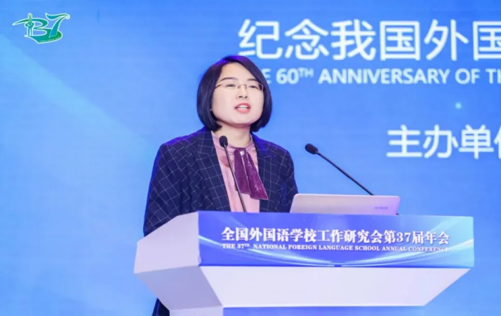 全国外国语学校工作研究会秘书长邢三多做《工作报告》,强调外国语学校应坚持外语办学特色,明确育人目标,革新办学机制体制,全面发展复合型科创型国际化外语人才。