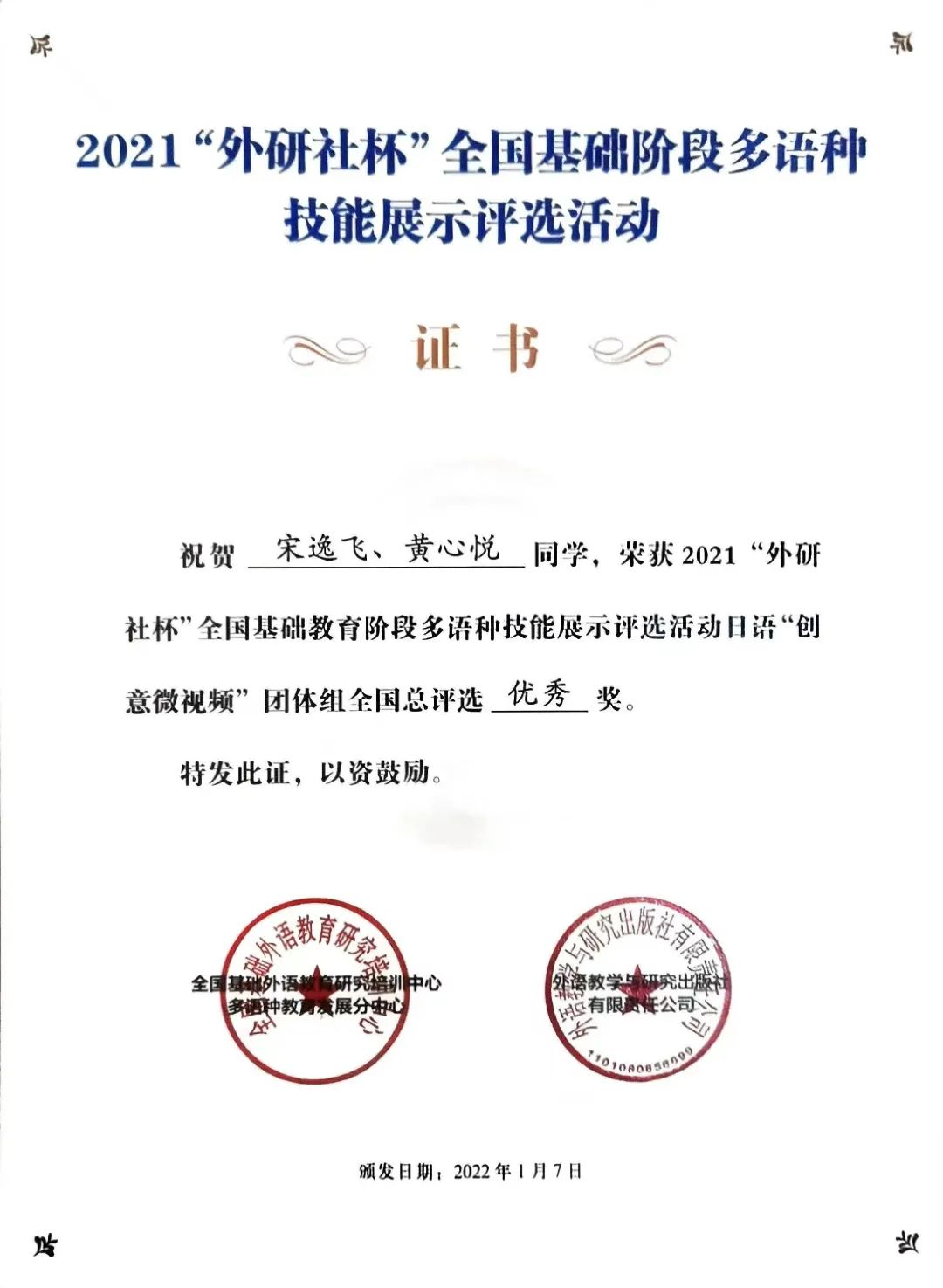 2019年,宜昌市外国语高中成功入选“全国外语教育研究多语种发展中心首批会员校。”