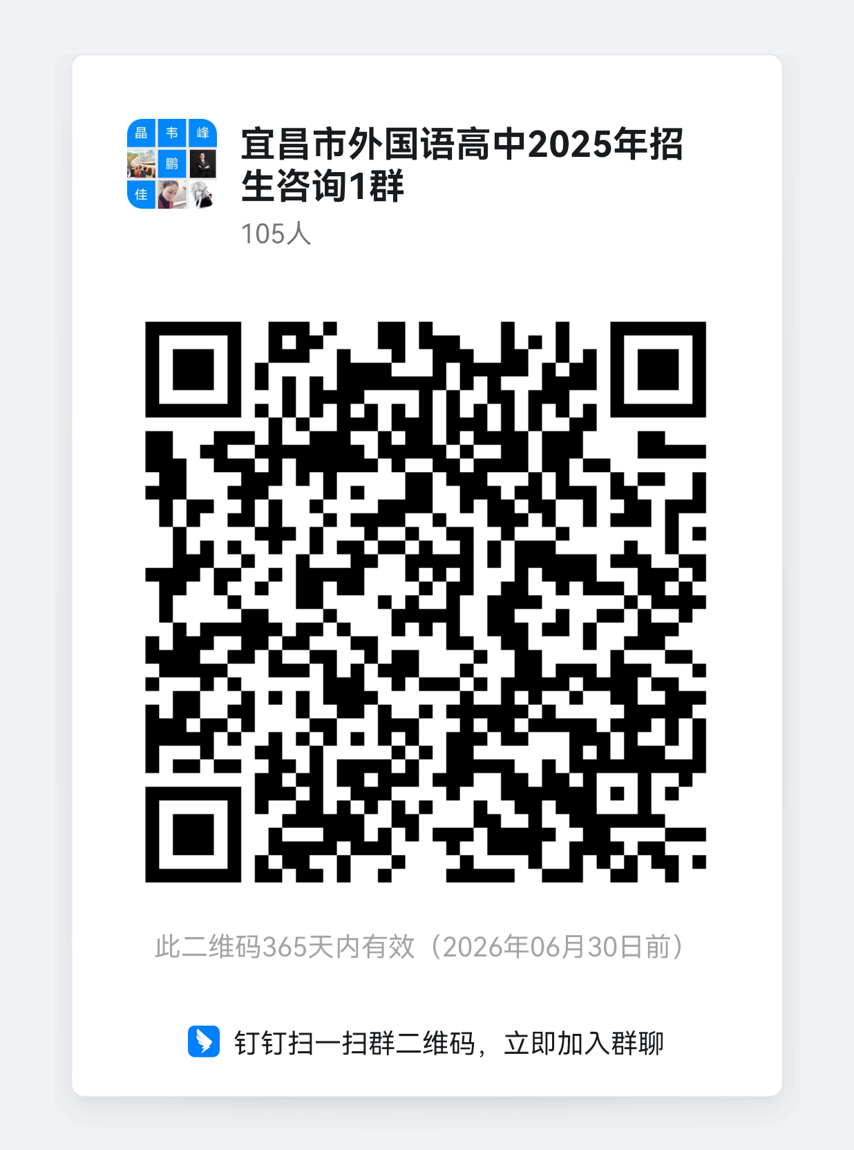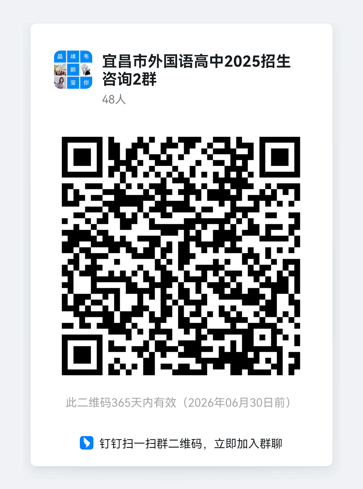 我校于2025年6月24日举行了自主招生考试,根据考生素养测试成绩,结合我校自主招生计划确定入选资格考生名单。现将宜昌市外国语高中2025年自主招生入选资格考生予以公示,名单附后。