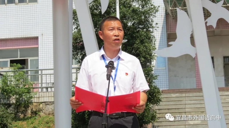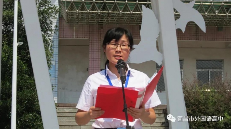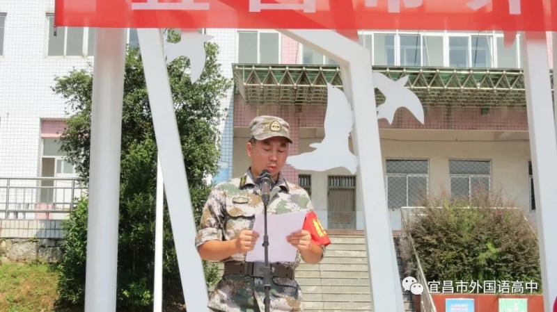谭小红校长宣布宜昌市外国语高中2020级新生军训开幕。