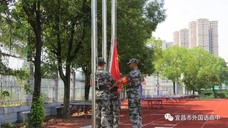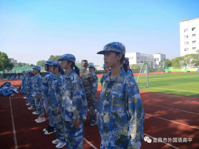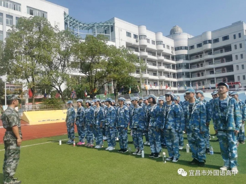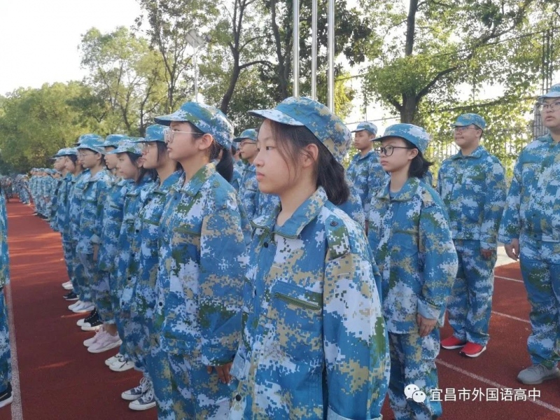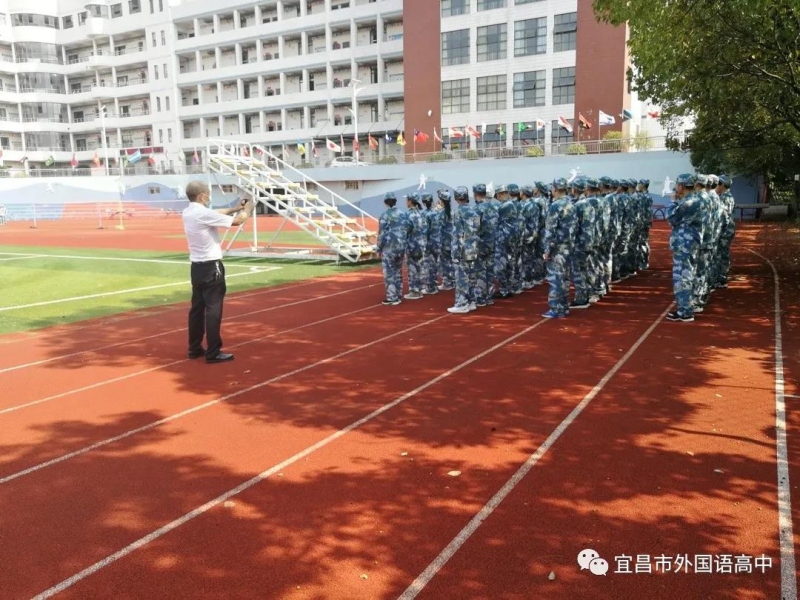 8月29日,伴随着似火的骄阳,宜昌市外国语高中2020级高一新生军训开营仪式在田径场隆重举行。