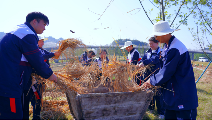 风吹稻田千重浪,田间遍地好“丰”光,谁将耕耘收割把活忙,且看外高学子试锋芒。2023年11月20日,宜昌市外国语高中组织开展了“享收割之乐,沐秋光之美”劳动教育课程。高一年级百余名学生分成两个小分队前往劳动教育基地——卷桥河湿地公园,体验劳动乐趣,感受自然风光,增长农学知识,培养多元能力。在活动过程中,同学们撸起袖子,扛起镰刀,亲自体验田间劳作的乐趣,不仅用行动诠释了“劳动最美丽,劳动最光荣”的深刻内涵,更以激情展现了“力尽不知热,但惜夏日长”的奋斗精神。