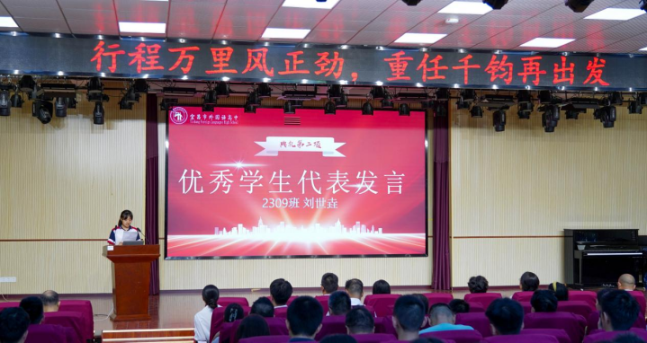少年何妨梦摘星,敢挽桑弓射玉衡。309班刘世垚同学的发言娓娓道来,作为优秀学生代表,她对学弟学妹们提出了殷切的期望,也让我们感受到高三学子不破楼兰誓不还的拼劲与韧劲。我们坚信在不到三百天的时间里,全体高三学子一定能够披荆斩棘、乘风破浪,在宜昌市外国语高中书写最满意的人生答卷。
