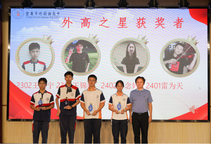 宜昌市外国语高中党总支副书记、校长赵伟、副校长李晓蕊、副校长龚韦韦、工会主席张坤、副校长刘谊,全体师生参加了本次大会。会议由学工处主任方玲丽老师主持。
